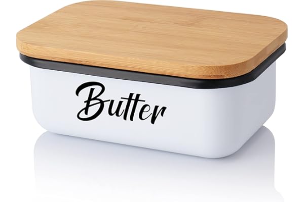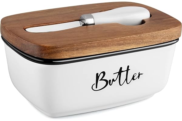 10 Best Butter Dish Recommended By An Expert 7. DOWAN Butter Dish, Ceramic Butter Dish with Lid and Butter Holder Container with High-quality Silicone Sealing for Countertop, Large Butter Dishes Holds up to 3 Sticks, White Butter Keeper. Butter Dish with Wooden Lid: DOWAN Butter dish is available in five colors and the wooden lid adds a rich texture.